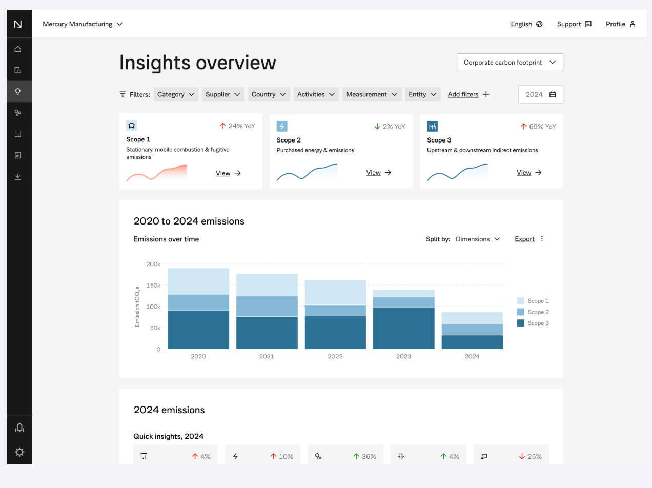 The platform highlights emission hotspots and provides guidance on operational improvements, supplier engagement, and efficiency initiatives.